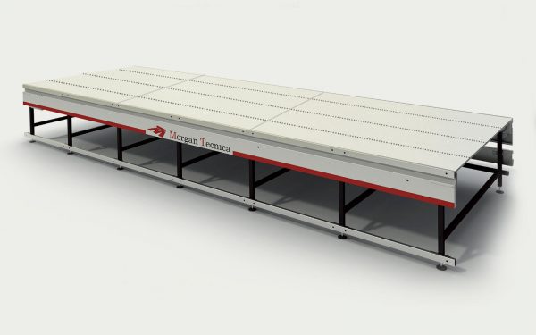 La característica única e innovadora de esta mesa es el sistema de transporte integrado, que permite mover el colchón en la zona de corte, sin esfuerzo y sin que las sábanas sufran ningún movimiento. Disponible en módulos de 4 y 6 metros, completo con todas las pistas necesarias para el deslizamiento de las extendedoras de Morgan, para que pueda insertarse dentro de una línea de esparcimiento normal y utilizarse, si es necesario, tanto para esparcimiento a máquina como manual. .